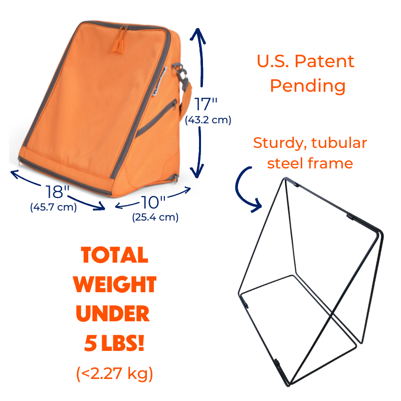 Playamigo is 18 inches wide, 17 inches tall and 10 inches deep. It weighs just 4.8 pounds and has 25 liters of carrying capacity.